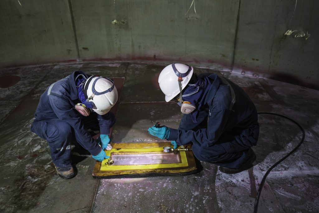 La prueba de vacío se utiliza para inspección de soldaduras de fondo y techo de tanques tipo API 650. Se debe aplicar solución jabonosa sobre el área de interés y ubicar la cámara de vacío sobre la soldadura y en contacto con el fondo y/o techo del tanque, posteriormente, se aplica una presión de aire por medio de un compresor o bomba, la cual genera un vacío sobre el material.